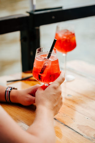 Naast een uitgebreid aanbod aan cocktails, wijn en bieren serveren we ook lekkere apero hapjes en een kleine snack!